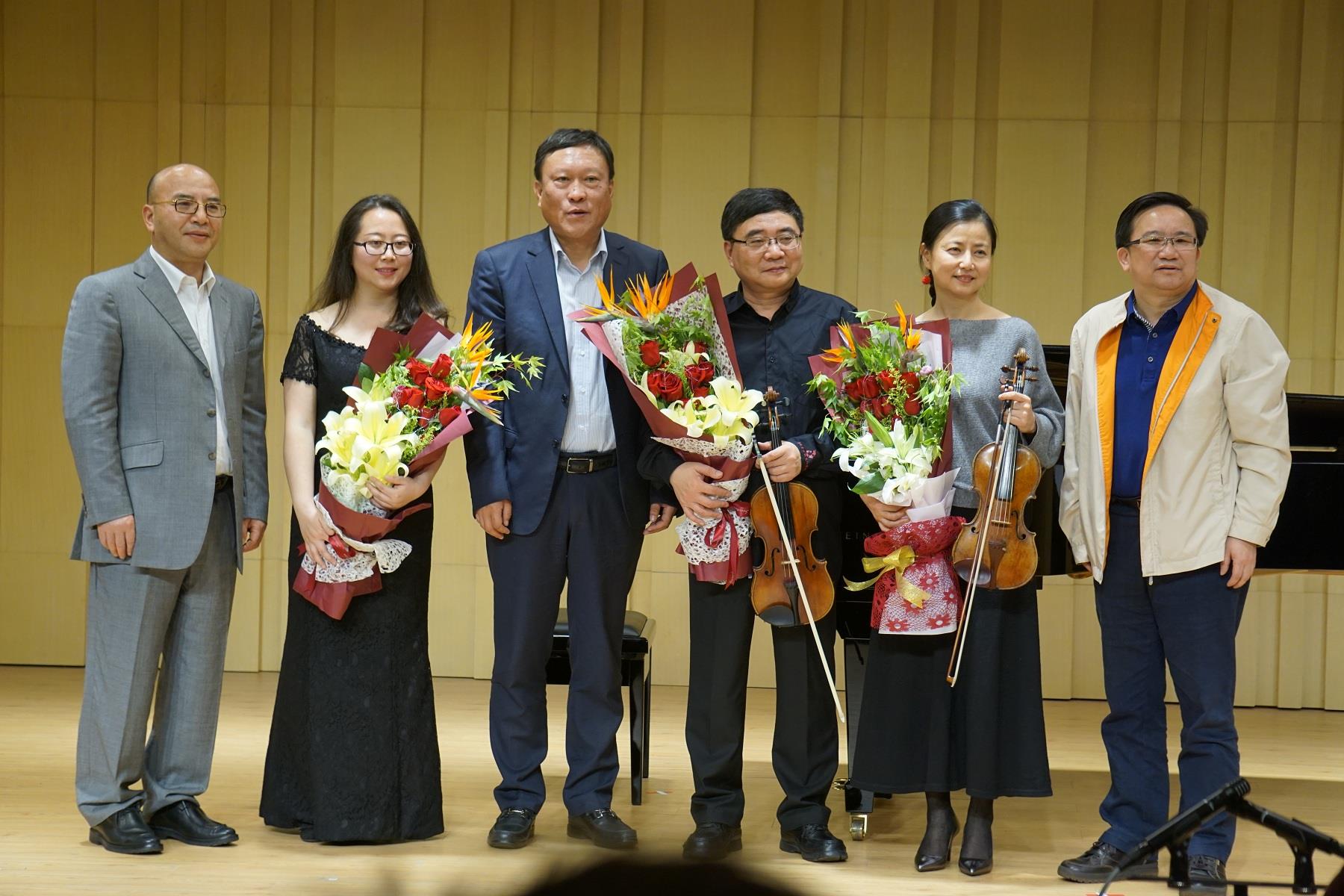讲座的后半部分则是演奏。主讲者叶校长为在场的观众挥弓演绎了风格不一的四首曲目。有深情婉转、音乐哀怨缠绵,听之使人心潮激荡,热泪盈眶的《叙事曲》、有《歌剧魅影》选曲中的《All I Ask of You》、有妇孺皆知的小提琴协奏曲《梁山伯与祝英台》,还有电影《上甘岭》的主题曲《我的祖国》。值得一提的是讲座的最后,担任助演嘉宾的是kaiyun开云官方网站音乐学院副院长夏小曹老师。叶校长诚恳得为夏老师献上鲜花和礼物,对其在小提琴方面的教授表示感谢。两人以悠扬的琴声感染了全场观众,一曲《我的祖国》引得现场掌声连连!