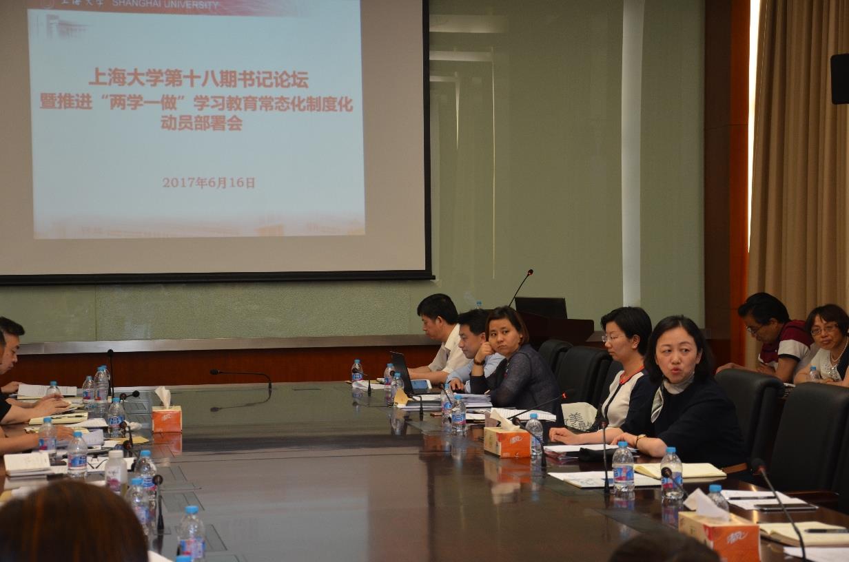 6月16日上午,kaiyun开云官方网站第十八期书记论坛暨推进“两学一做”学习教育常态化制度化部署动员会在校本部碳碳大楼一楼会议室举行,市委组织部组织一处副处长戴涛做了“《上海市“两学一做”学习教育常态化制度化实施方案》解读”专题报告。校党委副书记、副校长龚思怡,各学院(系统)党委、直属党总支书记以及党务部门领导应邀出席了论坛。论坛由组织人事部副部长、组织部部长王军华主持。 首先,戴涛处长从制定方案的背景、意义、主要内容和具体要求等方面详细解读《上海市推动“两学一做”学习教育常态化制度化实施方案》。他结合国情、党情、市情深刻阐述推进“两学一做”学习教育常态化制度化的重大意义;系统解析了推进“两学一做”学习教育常态化制度化的重点内容和目标要求。整个报告主题鲜明、内涵深刻、史料翔实、生动形象,使大家深受教育和启发。 会上,校党委副书记、副校长龚思怡代表学校党委对推进“两学一做”学习教育常态化制度化进行动员部署。她强调推进“两学一做”学习教育常态化制度化,要抓住带根本性方向性全局性的问题,明确目标任务,准确把握科学内涵和具体要求,紧密联系学校工作实际,在抓长、抓细、抓常上下功夫、求实效。第一,要坚持“学”是基础。全体党员要深学、细学党章党规和习近平总书记系列重要讲话精神,尤其要系统学习、深刻领会、全面把握习近平总书记对上海工作和对高校思想政治工作的重要指示要求,并将之作为各项工作的根本遵循,做到真学真懂真信真用,切实增强贯彻落实的自觉性、坚定性。第二,要把握“做”是关键。党员领导干部、教师党员、学生党员都要把政治合格放在首位,把执行纪律合格作为铁的要求,把品德合格作为重中之重,把发挥作用合格作为检验言行的重要标尺,始终发挥共产党员先锋模范作用。第三,要坚持“干”是核心。把学习成果转化为工作的能力、发展的动力,更好地推动学校高水平大学建设,党员干部不仅要自己干好,还要发挥好“关键少数”带动绝大多数的示范效应。第四,要始终聚焦基层。牢固树立党的一切工作到支部的鲜明导向,注重把思想政治工作落到支部,把从严教育管理党员落到支部,把群众工作落到支部,建强支部,做好支部工作,使支部真正成为团结群众的核心、教育党员的学校、攻坚克难的堡垒。第五,要坚持问题导向。党员领导干部、教师党员、学生党员和学校各级党组织要把查找解决问题作为规定要求,建立完善及时发现和解决问题的有效机制。 她希望在座的各位书记能强化担当精神和进取意识,切实履行岗位职责;加强学习,努力提升综合能力,更好地驾驭全局、办学治院;切实改进作风,自觉践行“三严三实”和“四讲四有”,扎扎实实推进各项工作,不折不扣完成好各项工作,为加快推进学校高水平大学建设而努力奋斗。 |