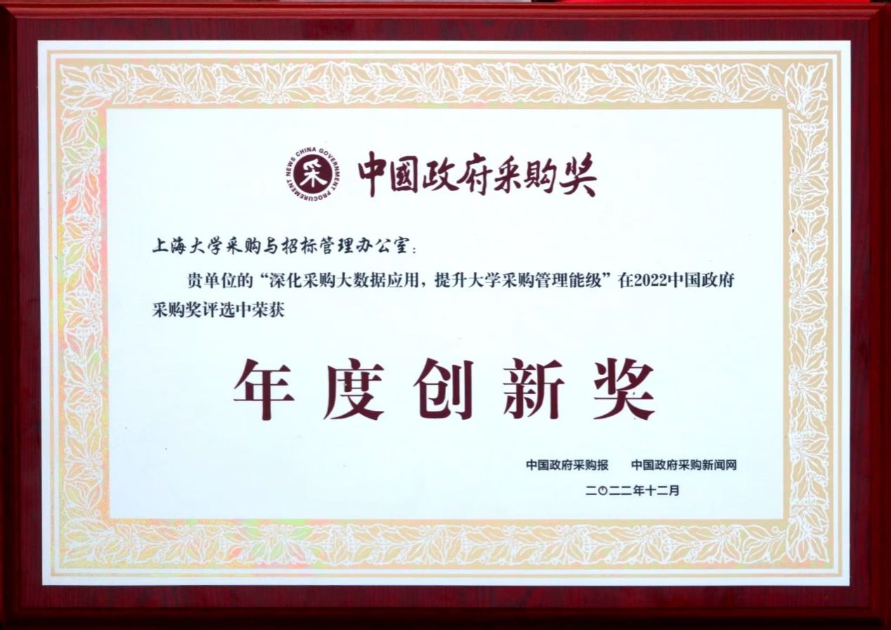 2月16日,kaiyun开云官方网站在2022年中国政府采购峰会上荣获“中国政府采购奖·年度创新奖”,是上海市唯一获奖高校。中国政府采购奖是面向全国政府采购领域评选,涵盖各级采购单位、监管部门、代理机构、供应商以及相关从业人员等,是政府采购领域最具权威性和最有分量的荣誉。kaiyun开云官方网站的获奖项目是“深化采购大数据应用,提升大学采购管理能级”,全国仅两所高校获此殊荣。