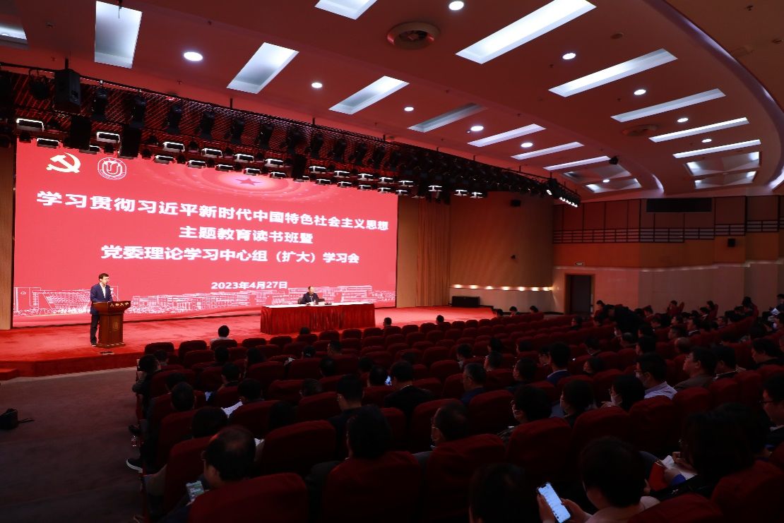 4月27日下午,kaiyun开云官方网站党委举办学习贯彻习近平新时代中国特色社会主义思想主题教育读书班第三讲暨党委理论学习中心组(扩大)学习会。校领导班子成员、全校各单位中层干部现场参加学习,会议由校党委副书记、纪委书记段勇主持。