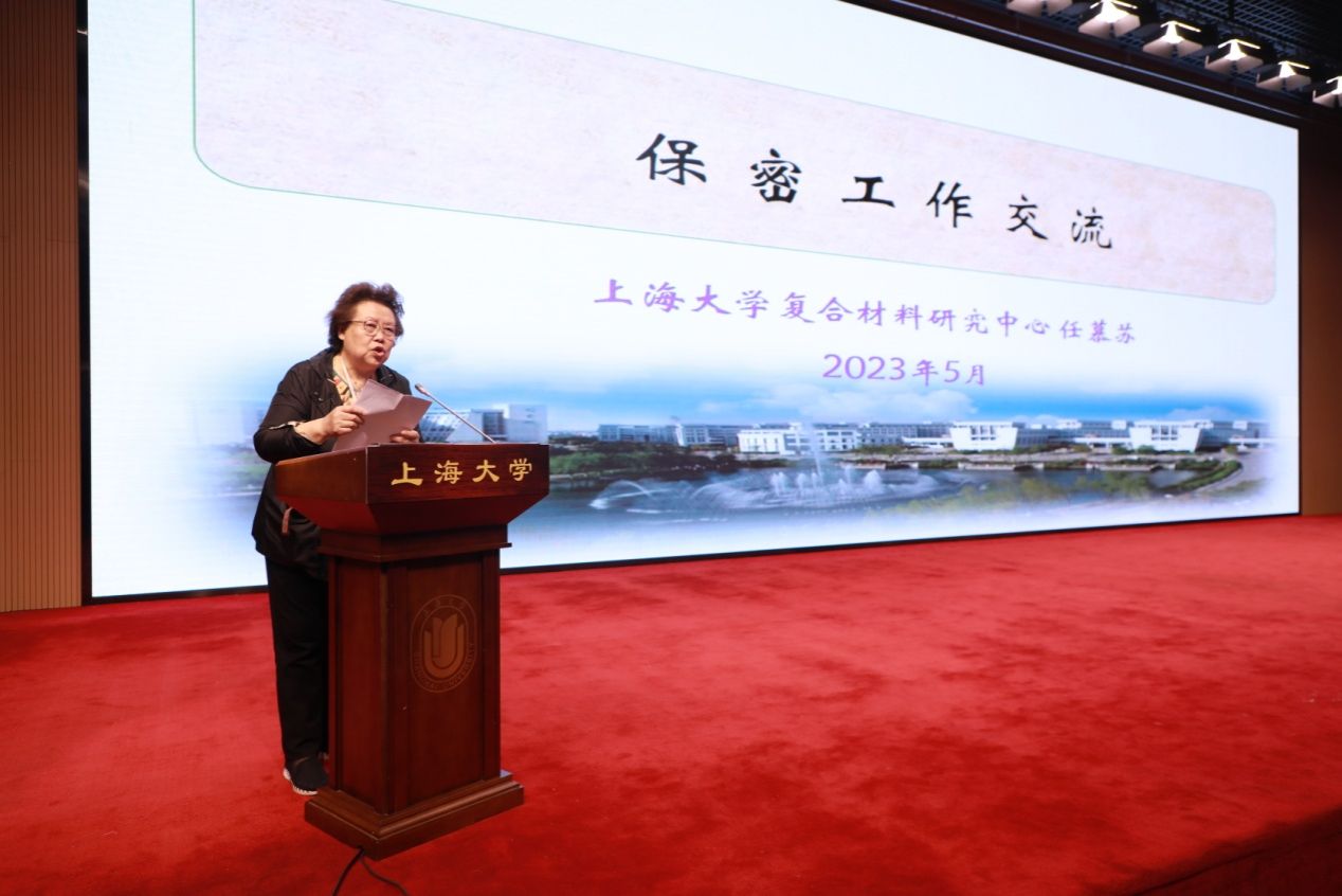 复合材料研究中心常务副主任任慕苏和计算机工程与科学学院院长谢少荣作为保密先进代表交流发言,分享了保密工作优秀经验。
