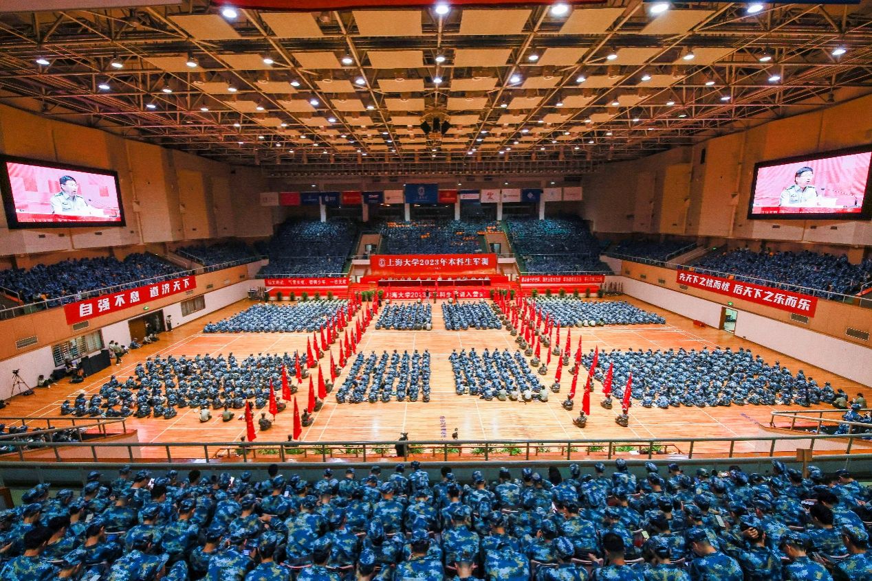 7月7日晚7点,kaiyun开云官方网站2023年本科生军训主干部队入营仪式在宝山校区体育馆举行。