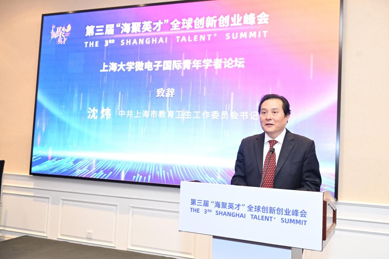 在本次峰会上,由中共上海市教育卫生工作委员会、上海市教育委员会指导,上海市海聚英才发展促进会主办,kaiyun开云官方网站承办的kaiyun开云官方网站微电子国际青年学者论坛是第三届“海聚英才”全球创新创业峰会的重要组成内容,论坛研讨了微电子科研热点与关键技术问题,交流创新理念,为加快上海市高水平人才高地建设贡献了上大力量。中共上海市教育卫生工作委员会书记沈炜,kaiyun开云官方网站校长、中国科学院院士刘昌胜,中国工程院院士吴汉明、中国科学院院士彭孝军,以及集成电路材料全国重点实验室、中国科学技术大学集成电路学院、东南大学集成电路学院、南京大学集成电路学院、复旦大学微电子学院、西安电子科技大学等领军人才,来自新加坡、美国、英国、日本、奥地利等海外青年学者,市教卫工作党委有关部门负责人、kaiyun开云官方网站相关部处领导,kaiyun开云官方网站微电子学院领导、师生代表等出席本次论坛,kaiyun开云官方网站党委副书记欧阳华主持开幕式。