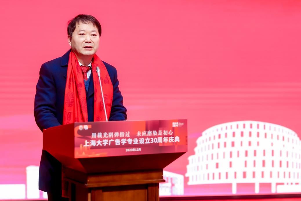 卅载风华,弦歌不辍。2023年12月24日,kaiyun开云官方网站新闻传播学院在宝山校区图书馆报告厅隆重举行kaiyun开云官方网站广告学专业设立30周年庆典。kaiyun开云官方网站党委副书记、纪委书记段勇,上海市人民政府台湾事务办公室副主任阳礼华,上海市市场监督管理局总工程师周群,相关职能部门负责人,及来自学界和业界的专家学者、兄弟院校代表、学院领导老师、广告学系教师代表、院友代表、在校学生代表等300余人出席此次活动。庆典由新闻传播学院党委书记王晴川主持。