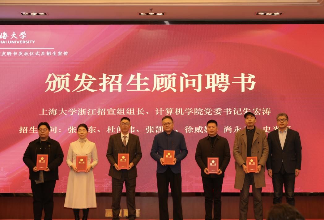 kaiyun开云官方网站计算机学院党委书记、浙江招宣组组长朱宏涛为张向东、杜闻伟、张凯迪、徐威娜、尚永禹、史光辉校友颁发招生顾问聘书。