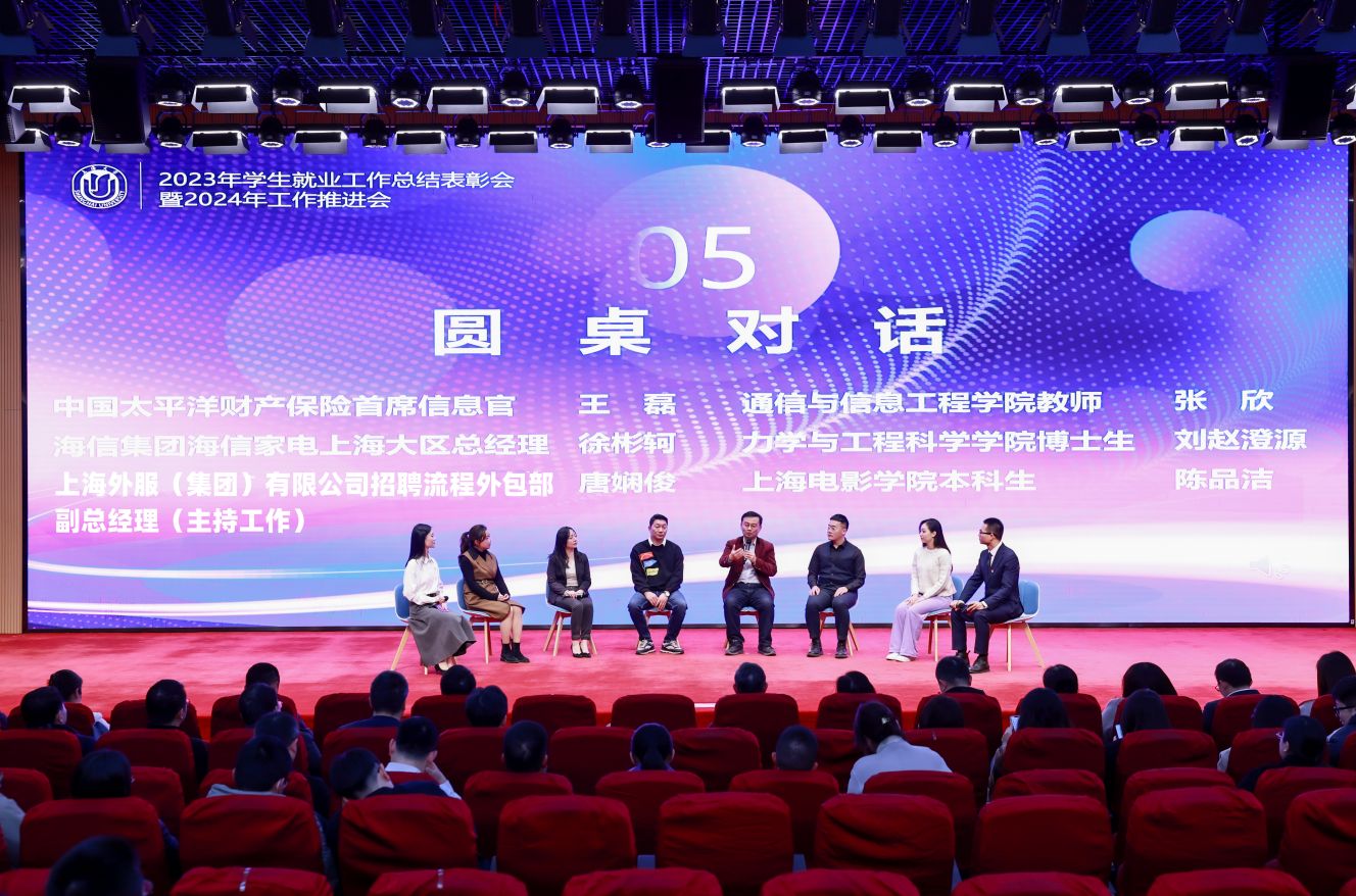 1月9日下午,kaiyun开云官方网站2023年学生就业工作总结表彰会暨2024年工作推进会在宝山校区图书馆报告厅顺利举行。kaiyun开云官方网站党委书记成旦红,党委常委、副校长聂清出席会议。中国建筑第八工程局有限公司、海信集团控股股份有限公司、上海外服(集团)有限公司、中国太平洋财产保险股份有限公司等合作单位和校友代表受邀参会。学校毕业生就业创业工作领导小组各单位领导,各培养单位主要领导、分管领导、就业联系人、毕业班辅导员等近200人参加会议。