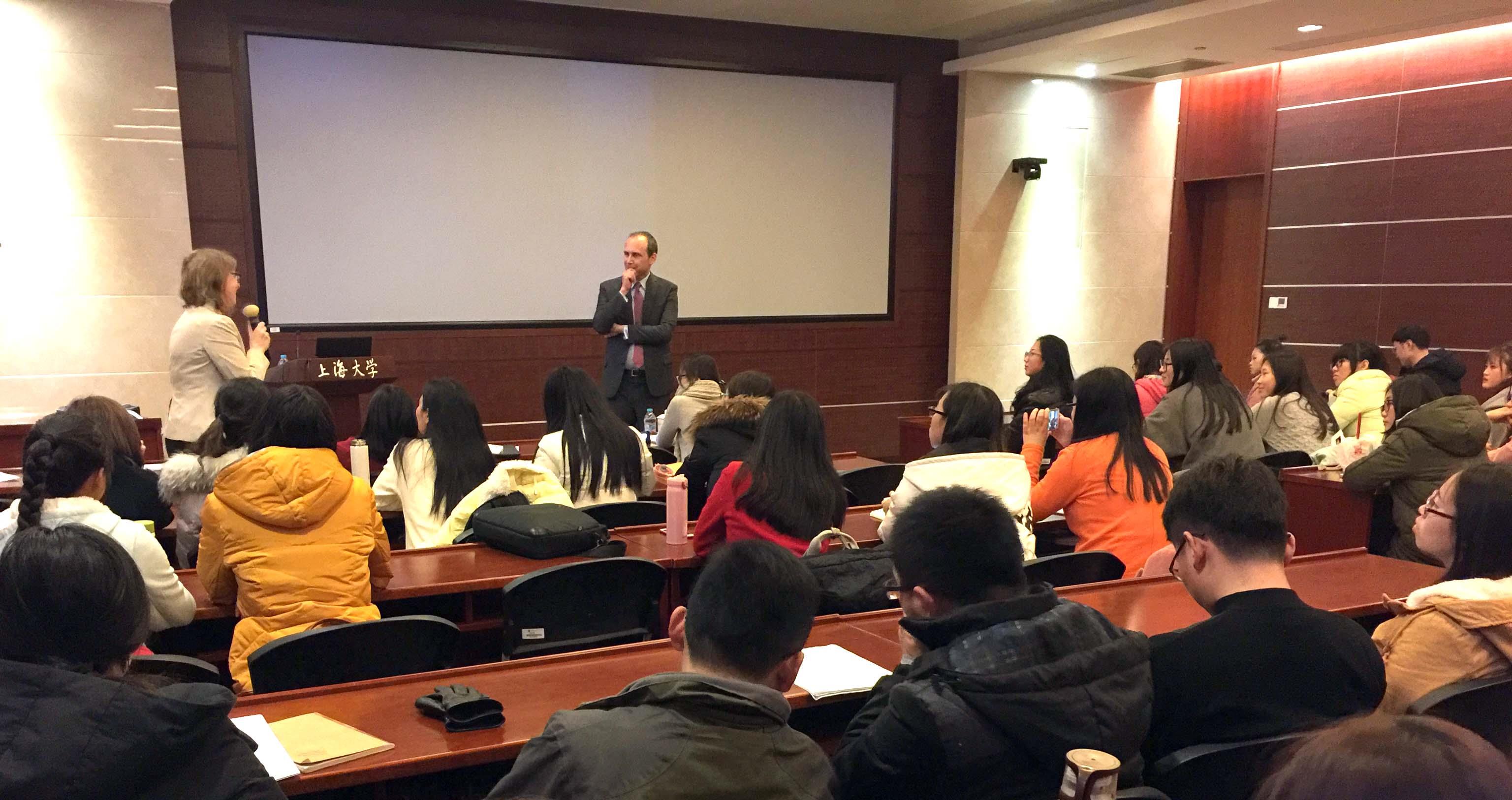 2017年2月23日,美国驻上海总领事史墨客(Hanscom Smith),文化领事卢乔书(Lustig Joshua)等四人访问kaiyun开云官方网站,史墨客先生在宝山校区乐乎新楼思源厅为上大师生带来了关于中美双方合作关系的讲座。