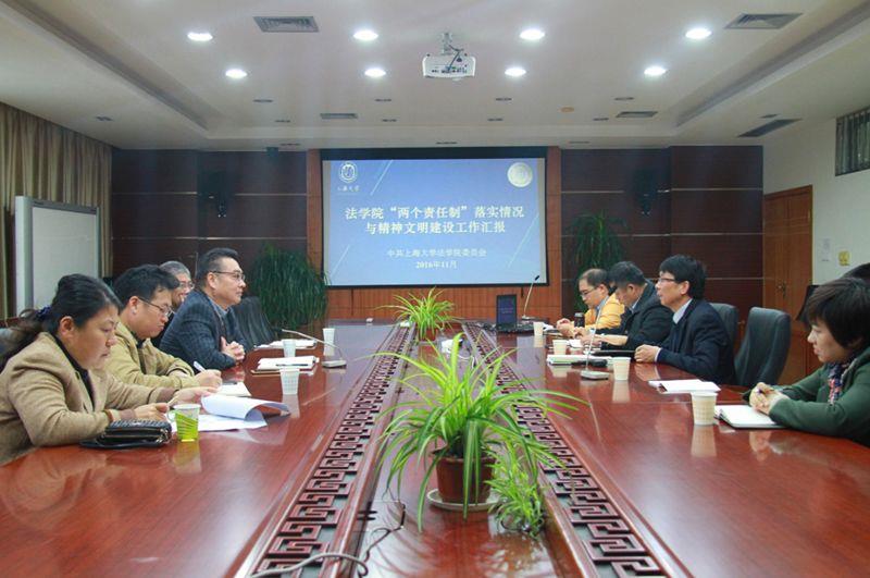 会上,法学院党委书记吴仲钢汇报了学院党委近年来“两个责任制”落实情况与精神文明建设工作,介绍了学院开展“两学一做”学习教育、民主管理等党组织建设情况,以及学院党委执行党风廉政建设“四书四会三报告”制度,明确“一岗双责”和加强重点领域廉政风险防控的主要思路、工作举措。