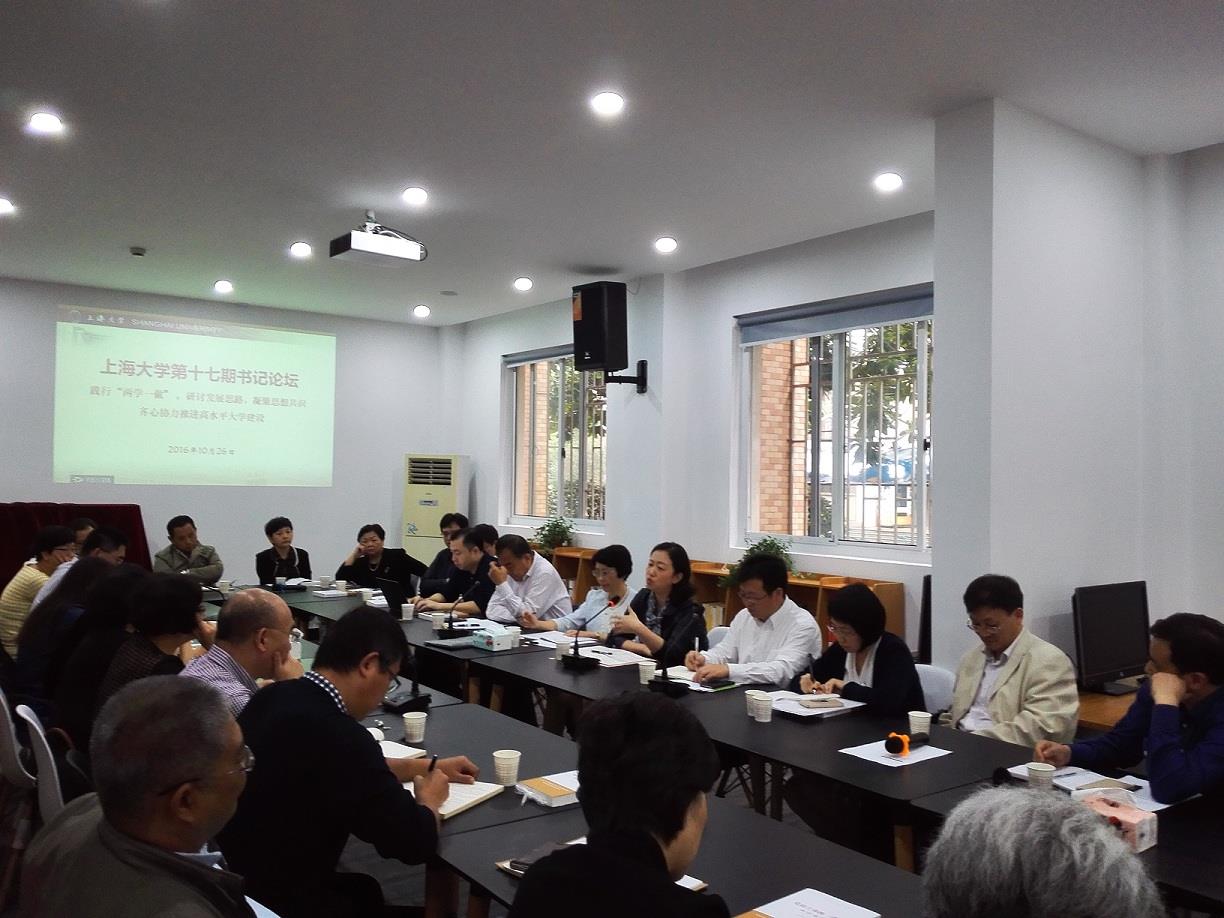 论坛主要围绕“基层党组织在高水平大学建设过程中如何凝聚人心、发挥战斗堡垒作用?”、“如何将‘两学一做’学习教育融入到学校改革发展工作中?”以及“对学校深化改革发展的建议”三个发面展开讨论。土木系党委书记杨骁结合现状介绍了思想建设、人才培养工作以及‘两学一做’学习教育情况;社区学院党委书记陆瑾着重介绍了书院制建设的思考情况;材料学院党委书记周路海介绍了学院党委在新的形势下达成思想共识的做法,特别是以文化为引领加强人才队伍建设的思考;悉商学院党委书记李双介绍了学院追求卓越、开拓创新的精神文化建设情况;钱伟长学院党总支书记谢宝婷介绍了钱伟长学院作为国家试点单位在改革发展浪潮中的有关工作。在座的各学院(系统)党委、直属党总支书记结合实际工作,畅所欲言,讨论气氛热烈。社会科学学部(筹)党委书记余洋、体育学院党总支书记吴国琴、生命学院党委书记沈忠明、马克思主义学院党总支书记李梁、校团委书记许烁也做了交流发言。