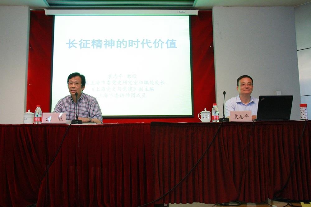 为纪念中国共产党成立95周年和中国工农红军长征胜利80周年,6月21日下午,中共上海市委党史研究室征编处处长、《上海党史与党建》副主编袁志平教授应邀为校院两级中心组作题为《长征精神的时代价值》的专题报告。这场报告是上海市委宣传部开展的纪念建党95周年和红军长征胜利80周年主题宣讲活动的首场宣讲报告。袁志平教授也是上海市委讲师团“两学一做”讲师团和纪念建党95周年和红军长征胜利80周年讲师团成员。本次报告会由副校长汪敏主持,kaiyun开云校院两级中心组成员、副处及以上干部出席了报告会。