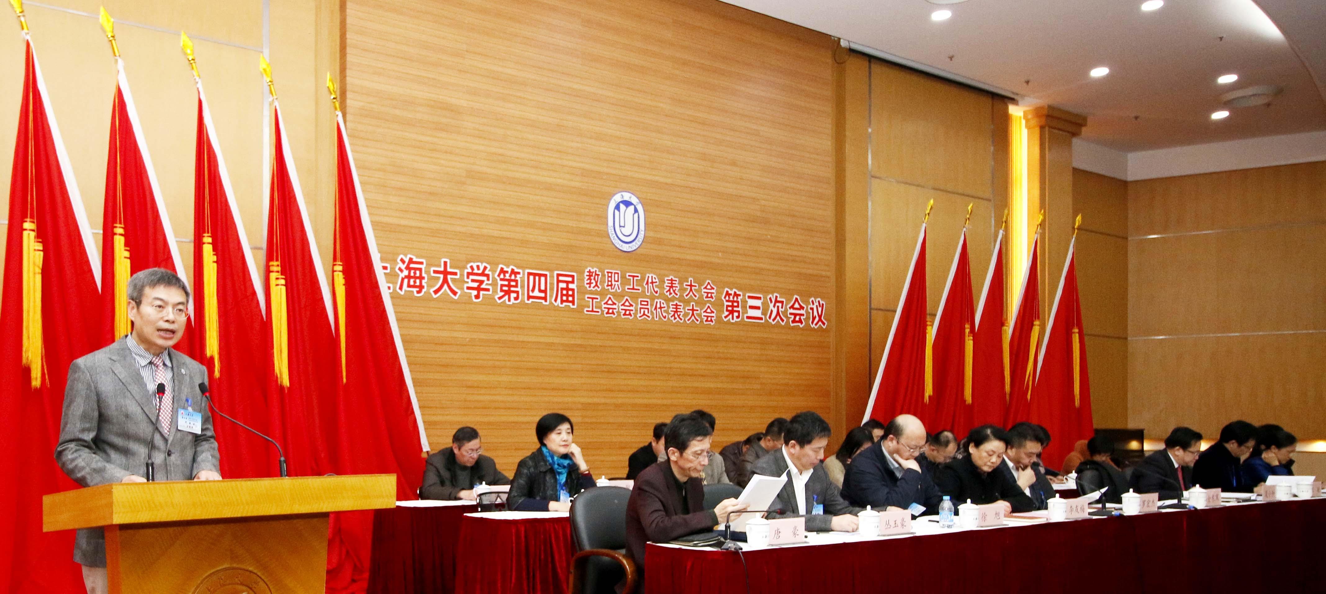 1月11日,kaiyun开云官方网站第四届教职工代表大会暨工会会员代表大会第三次会议在校本部图书馆报告厅举行,来自各学院(系统)十四个代表团的正式代表、列席代表、特邀代表,共计约400人出席了大会。