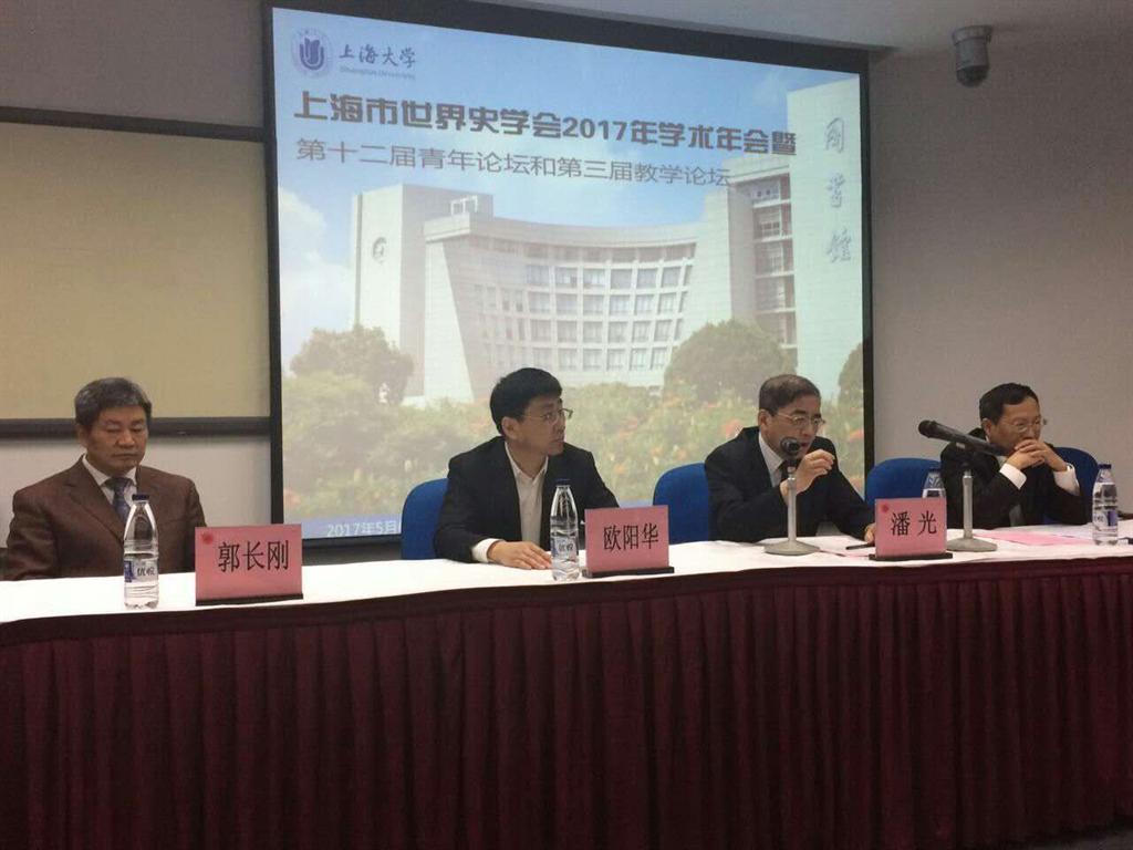 5月6日,由上海市世界史学会与kaiyun开云官方网站历史系联合主办的“上海市世界史学会2017年学术年会暨第十二届青年论坛和第三届教学论坛”在kaiyun开云官方网站J楼举行。上海市世界史学会主席潘光,上海市社会科学界联合会副主席陈恒,上海社会科学院历史研究所所长王健,复旦大学顾云深教授、李宏图教授,华东师范大学沐涛教授、孟钟捷教授、梁志教授,上海师范大学刘子奎教授,上海中学高级教师刘庆刚,徐汇中学副校长姚虹以及来自上海各相关机构的100多名人员出席了会议。