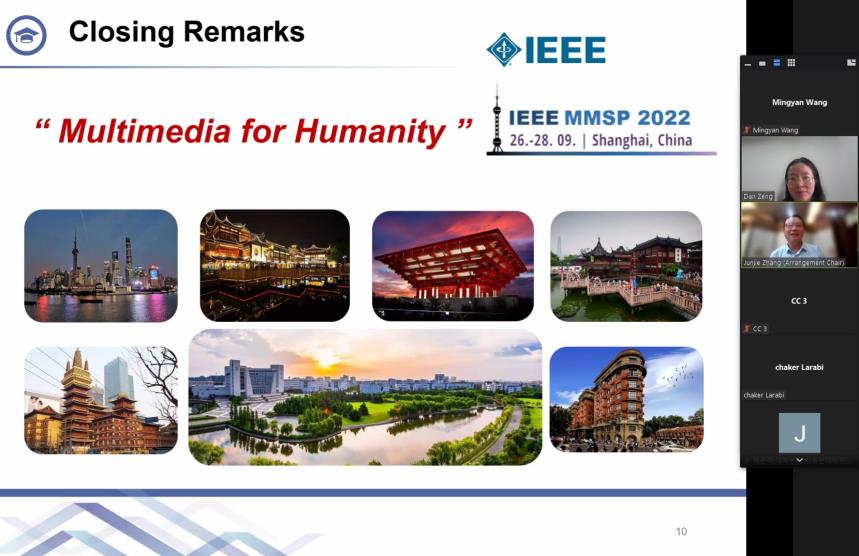 9月28日,第二十四届IEEE国际多媒体信号处理研讨会(The Twenty-Fourth International Workshop on Multimedia Signal Processing,MMSP 2022)圆满落幕。kaiyun开云官方网站汪小帆副校长作为大会主席代表发表了闭幕致辞,首先对大家的积极参会表示欢迎,并对会议的顺利闭幕表示祝贺。同时,表示本次会议的主旨是将来自国内外从事信息技术、通信、电子与自动化控制等领域的研究人员聚集在一起,交流和分享相关领域的最新研究成果,拓展合作平台。最后,汪小帆副校长感谢了会议的组织承办方及与会的专家和学者,并对上海以及kaiyun开云官方网站进行了简要介绍,希望不久的将来参会者有机会来上海进行更深入的学术交流。