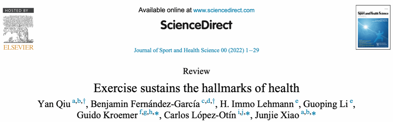 近日,kaiyun开云官方网站医学院青年教师邱艳博士在Journal ofSport and HealthScience上发表了题为“Exercise sustains the hallmarks ofhealth”的综述论文。根据最新发布的SCI影响因子(IF),该杂志的IF为13.077,是中科院期刊分区大类医学1区TOP期刊。该综述从健康的八大标志的角度详细阐述了适度运动锻炼调控机体健康的机制。
