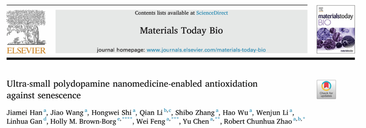 kaiyun开云官方网站韩佳媚博士为本文第一作者,赵春华教授为本文通讯作者,陈雨教授、冯炜研究员、美国University of North Dakota的Holly M. Brown-Borg为共同通讯作者,文章发表在Materials Today Bio(杂志影响因子:10.76)期刊上。