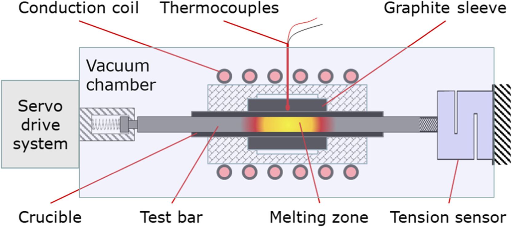 在这项研究工作中,作者基于CAST团队原创的冶金凝固过程热模拟方法,开发了动态加载凝固裂纹热模拟试验机。该装置通过控温冷却和主动加载来模拟铸件/铸坯中特征单元的实际凝固过程并测试其热裂行为,实验过程可实时测量应力、应变和温度数据。