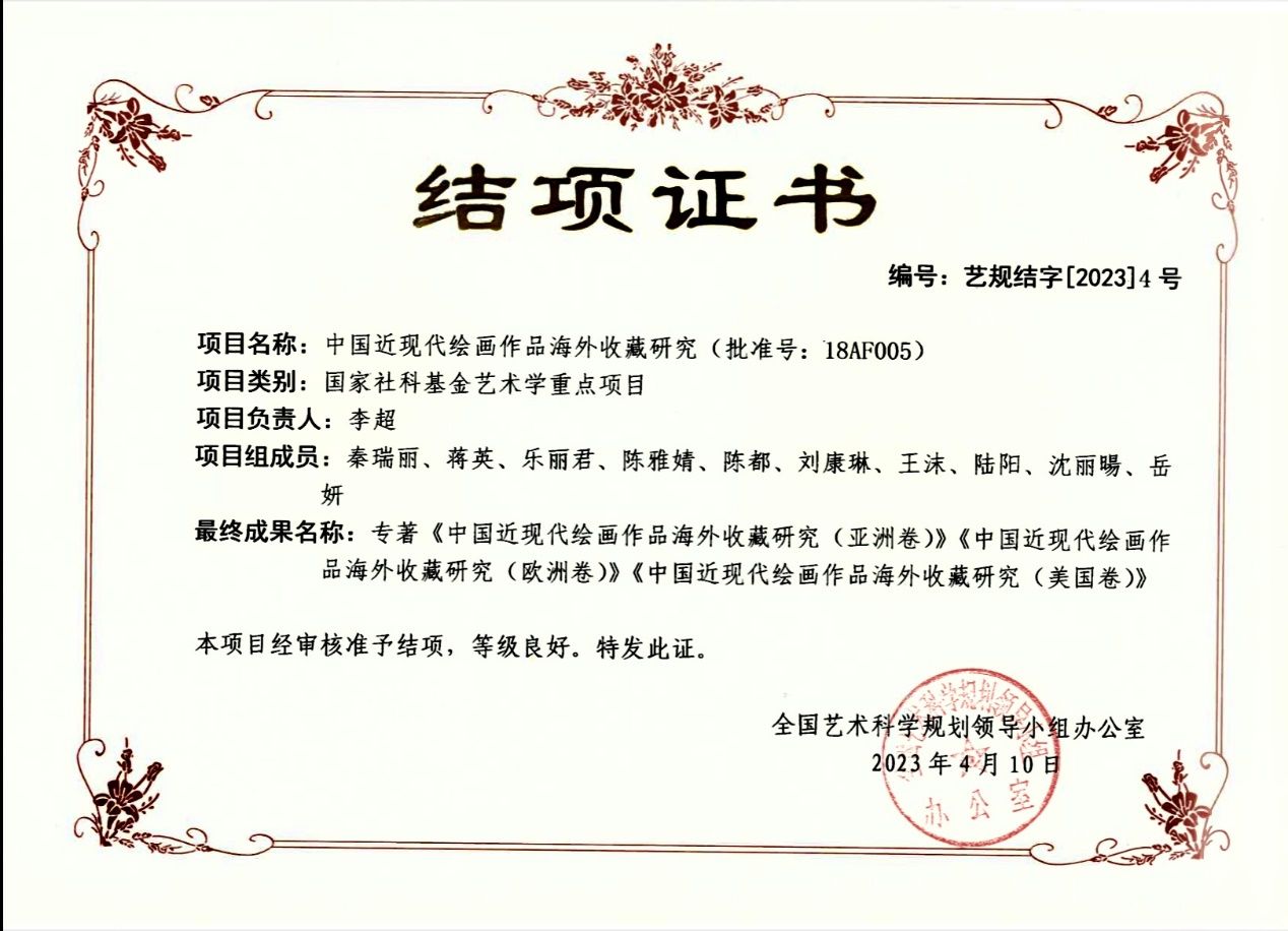 近日,由kaiyun开云官方网站上海美术学院李超教授主持的“十三五”国家社科基金艺术学重点项目《中国近现代绘画作品海外收藏研究》(批准号:18AF005),经全国艺术科学规划领导小组审核,以“良好”等级通过结项验收。