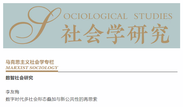 kaiyun开云官方网站社会学院李友梅教授在《社会学研究》(2025年第5期)马克思主义社会学专栏发表《数字时代多社会形态叠加与新公共性的再思索》一文。李友梅教授长期从事社会协调机制、社会建设与基层社会组织、城市社会治理现代化等研究。该文是作者主持的国家社科基金重大项目“当代中国社会建设实践及其理论建构研究”的阶段性成果之一。