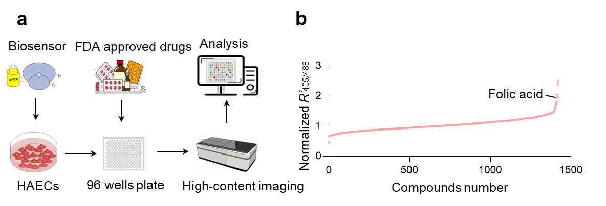 图2,基于iNap的高通量化合物荧光筛选分析系统(a)及其应用(b)。