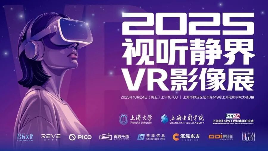10月24日至26日,学院先后落地两大展览活动,从“视觉沉浸”与“声音艺术”双维度,展现电影科技的前沿探索成果。其中,10月24日开幕的2025“视听静界”VR影像展,作为静安区“视听静界”超高清产业集聚区重点活动,以“超高清 + 虚拟现实”融合为核心,设置五个主题展厅,展出《太空奥德赛》《梦回圆明园》《半条被子》等七部多元题材VR影像作品,覆盖科幻探索、历史复现、人文叙事等领域。近百名观众在800平方米的“VR 影院空间”中,直观感受科技赋能下的沉浸式叙事魅力。