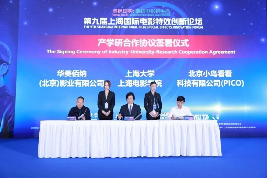学院与华美佰纳(北京)影业有限公司、北京小鸟看看科技有限公司(PICO)签署产学研合作协议,围绕VR内容创制、大空间电影技术研发、数字资产库建设等展开深度合作,其中 PICO团队在论坛中提出,将依托AI技术推动VR大空间进入“标准化、精品化、规模化”2.0阶段,双方计划联合开发VR电影制作工具,降低创作门槛。