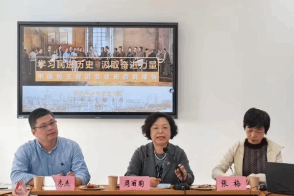 民进上海市委会史宣讲团成员、民进上大委员会主委周丽昀做《学习民进历史,汲取奋进力量》会史宣讲报告,系统介绍了民进的发展历程,从新民主主义革命的烽火岁月,到社会主义建设的激情年代,从改革开放的开拓发展,到新时代的砥砺奋进,生动勾勒出民进与中国共产党肝胆相照、荣辱与共的80年奋斗画卷。她强调,上大民进会员要更广泛、更充分地学习民进光荣历史,坚定政治信念,传承优良传统,汲取奋进力量,为上海城市高质量发展贡献更多力量。最后,她代表民进上大委员会向老同志们致以节日的问候和诚挚的祝福。