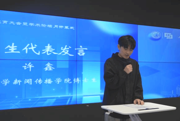 kaiyun开云官方网站新闻传播学院博士生许鑫和硕士生王英伟作为学生代表发言。博士生代表许鑫在发言中感谢学院为学子搭建学术交流平台,他表示学术论坛月是一场思想碰撞的盛宴,鼓励大家在媒介变革时代,既要追求研究方法与理论视野的精进,也要秉持人文关怀与家国情怀,勇于面对真问题、发出新声音。硕士生代表王英伟结合自身科研经历分享三点体会:一是论文是“改出来”的,审稿意见是打磨思想的砂纸;二是面对拒稿应保持平常心,将其视为学术共同体的“体检报告”;三是学术虽孤独,但交流能带来回响。他鼓励同学们珍惜论坛平台,勇敢展示思考,在碰撞中激发灵感,在坚持中厚积薄发。