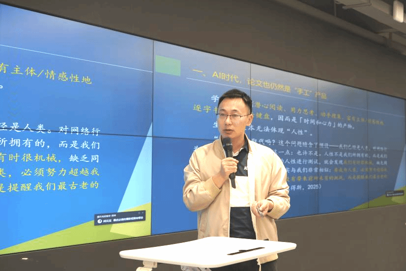 卞冬磊教授围绕学术论文写作的本质展开论述,强调论文不仅是知识的传递,更是思想的流动与个人思考的呈现。他指出,高质量的学术写作需要研究者全身心投入,在选题、研究与撰写各个环节都要体现个人的主体性思考。针对当前人工智能在学术写作中的应用,他特别提醒要警惕过度依赖技术工具,保持学术创作中不可或缺的人文思考与情感温度。