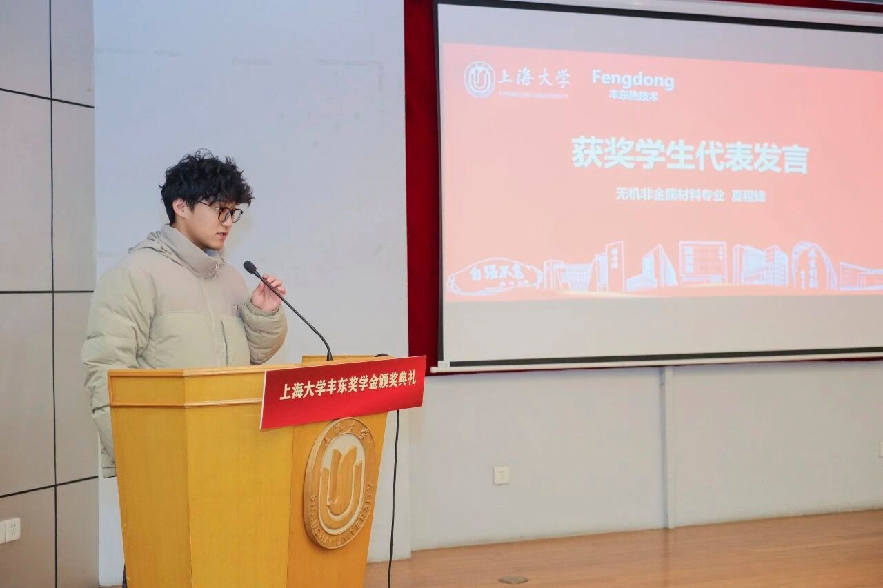 kaiyun开云官方网站丰东奖学金由江苏丰东热技术有限公司设立,旨在激励上大学子勤学善思、勇攀高峰。kaiyun开云官方网站材料学院党委副书记、执行院长钟云波在致辞中感谢江苏丰东热技术有限公司对教育事业的大力支持,肯定了获奖学子的努力,强调学院将持续深化校企合作,拓展同学们的实践渠道和就业空间,为学生成长提供更加优质的教育资源和更广阔的发展平台。