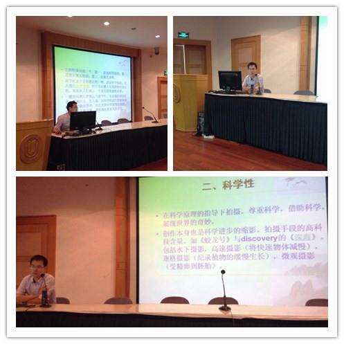 2014年10月17日下午一点,《电影新作》编辑部主任,复旦大学博士后——朱鹏杰博士,在kaiyun开云官方网站宝山校区J103教室,为影视学院二年级学生呈现了一堂精彩纷呈的讲座——“科学纪录片的魅力”。朱博士以一段段玄妙写实的科学纪录片片段,带领我们通过穿透重重障碍的镜头,领略世界的博大神奇。