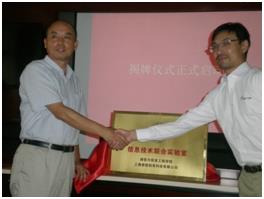 2014年9月10日上午,上海感信信息科技股份有限公司与kaiyun开云官方网站通信与信息工程学院在翔英大楼举行本科生/研究生联合培养基地揭牌仪式。kaiyun开云官方网站通信与信息工程学院院长王廷云教授与感信公司CEO徐宏震先生一起为联合培养基地揭牌。通信学院副院长严壮志教授和感信公司CEO徐宏震先生分别代表双方签署了联合培养基地合作协议。通信学院苗鹏博士与感信公司CEO徐宏震先生签署了科研课题“基于光谱检测的包内化学试纸判定系统”的研发协议。