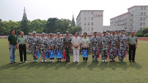 仲星明首先对所有参训师生及官兵所付出的艰辛努力表示了衷心的感谢和诚挚的问候,他鼓励同学们将军训作为一次难得的契机,向青奥赛场上努力拼搏的运动健儿们学习,锤炼意志、培养品德、升华精神、完善人格;陈大明高度肯定了同学们在军训中所取得的成绩,希望大家再接再厉,严守纪律、服从指挥,科学训练,坚持到底,最终圆满完成本次军训任务,为将来的学习打下良好的体能和意志基础;何小青、张华良对同学们在过去几天的军训中所取得的巨大进步表示祝贺,高度赞扬了大家不怕苦不怕累的精神,并希望他们戒焦戒躁,在接下来的训练中再创佳绩,把在军训中形成的好作风、好方法、好传统带到今后的学习与生活中去。慰问活动虽然简短,但掌声不断,气氛非常热烈。最后,院领导给大家送上了慰问品。