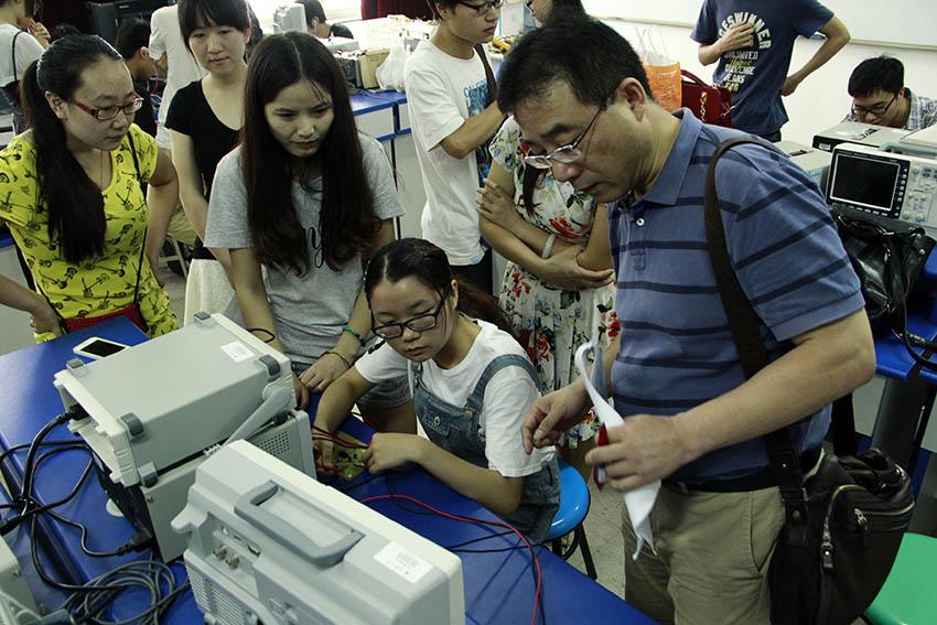 7月11日,竞赛到了成果验收阶段。每一组的电路都要接受竞赛评委会专家组的现场测试考核。考核有条不紊地进行,同学们的内心却汹涌澎湃,急切地等待着测试结果的揭晓。正如通信学院的一位同学所说:虽然上过几次“战场”,但还是感到紧张。