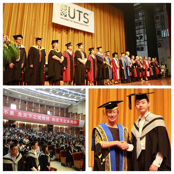 管风琴乐曲声中,身着庄严学袍的中澳双方领导入场,全场来宾起立鼓掌,演奏中澳两国国歌后,典礼正式开始。毕业典礼全程使用英语并严格遵循隆重庄严的西方毕业典礼礼仪。代表悉尼科技大学的权杖插在主席台前端。典礼由悉尼科技大学校长Ross Milbourne主持。