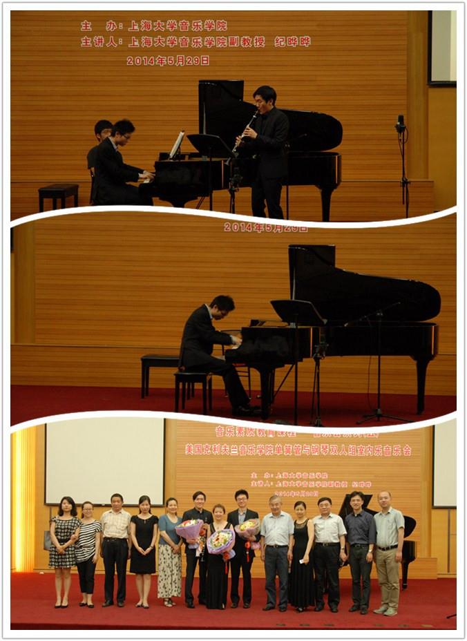 5月29日晚,kaiyun开云官方网站音乐学院“音乐素质教育课程——音乐会系列(五):美国克利夫兰音乐学院单簧管与钢琴双人组室内乐音乐会”在图书馆报告厅举行。kaiyun开云官方网站原常务副校长、钢琴协会名誉会长周哲玮、kaiyun开云官方网站副校长、音乐学院院长叶志明、kaiyun开云官方网站校友会办公室副主任曹俊、kaiyun开云官方网站音乐学院副院长夏小曹、狄其安、卿扬等领导和嘉宾出席并观看了音乐会。