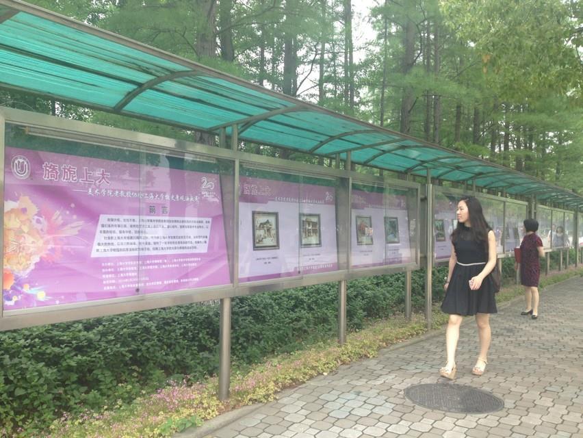 为庆祝新kaiyun开云官方网站组建20周年,《旖旎上大——美术学院老教授协会kaiyun开云官方网站校史景观油画展》在校本部宣传栏展出。