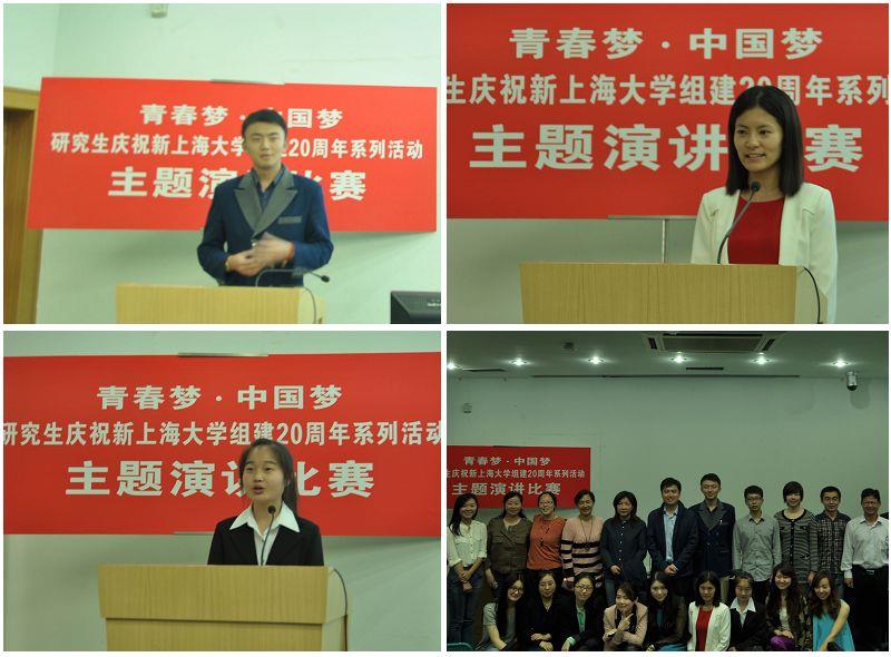 5月14日下午,研究生庆祝新kaiyun开云官方网站组建20周年系列活动之“青春梦•中国梦”主题演讲比赛在宝山校区J101举行。经过前期的报名参赛和初赛选拔,共有来自各学院的12名研究生晋级决赛。本次演讲比赛邀请校党委组织部副部长、校团委书记胡大伟,校精神文明办公室副主任王沁,校语委秘书、上海市语言文字水平测试中心kaiyun开云官方网站测试站办公室主任徐骅,上海市普通话水平测试员高芳担任评委。