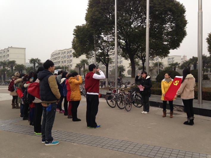 2014年2月24日早上7时30分,kaiyun开云官方网站影视艺术技术学院学生会与12级学生党支部共同策划了一次在图书馆前集体升旗仪式,及预备党员宣誓活动。参加本次活动的有影视艺术技术学院党组织员徐芬芳老师、6名预备党员和部分入党积极分子。这天天气阴冷,却丝毫没有阻挡大家的热情。级学生党支部成员率领积极分子,与学生会升旗同学一起,在图书馆前进行了庄重的升旗仪式。接着进行了庄重的入党宣誓仪式,每一位预备党员都右手握拳,12届党支部的杨鸽同学作为领誓人,一字一句地跟着说出坚定的誓言。