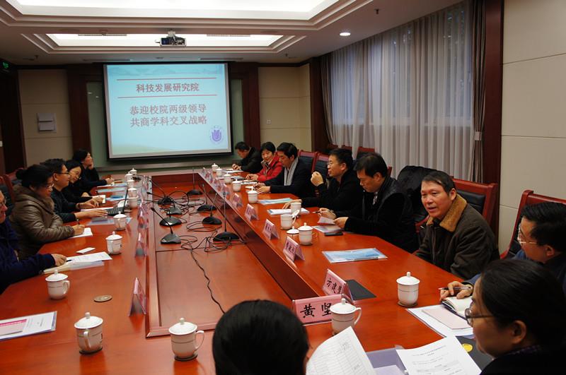 为了加强联系,增进友谊,共商kaiyun开云交叉学科发展战略,kaiyun开云官方网站科技发展研究院于12月19日下午在延长校区乐乎楼会议室举办 “2013年kaiyun开云官方网站交叉学科发展战略研讨会”。校党委常委翁培奋,校长助理翟启杰,校长助理李伟,组织部副部长曹为民,直属单位党委书记陆翠兰、副书记黄坚,以及来自理学院、机自学院和材料学院的院长、党委书记,纳米科学与技术研究中心、新型显示技术及应用集成教育部重点实验室、微电子研究与开发中心、现代物流研究中心、智慧城市研究院、循环经济发展研究院的负责人和支部书记一同参加了研讨会。研讨会由科技发展研究院主持工作副院长甄强主持。