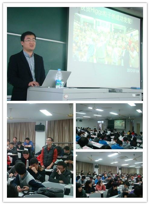 11月24日上午9点,主题为“‘上帝粒子’和粒子物理学”的学术报告在校本部GJ106热烈举行,教室早早地挤满了兴致勃勃的同学。报告由kaiyun开云官方网站校友、兰州大学核科学与技术学院副教授于福升主讲,于教授08年毕业于kaiyun开云官方网站物理系之后,先后获得了巴黎第十一大学、法国国家科学研究院直线加速器实验室联合培养博士生学位和中国科学院高能物理研究所博士学位。