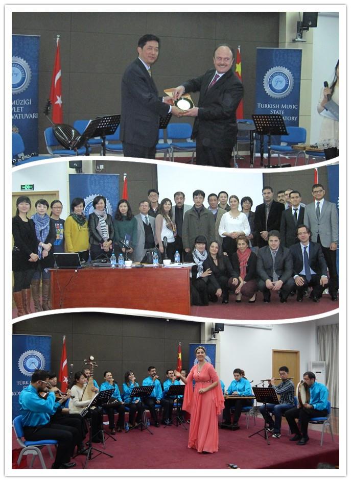 值此2013年中国的“土耳其文化年”之际,在土耳其文化旅游部,土耳其驻上海总领事馆的支持下,土耳其安卡拉伽兹大学(Gazi University)音乐学院派遣代表团于11月21日访问了kaiyun开云,举办讲座及音乐会,并与kaiyun开云音乐学院的教师和民乐团成员开展交流研讨,从而促进了两校在音乐艺术方面的交流。