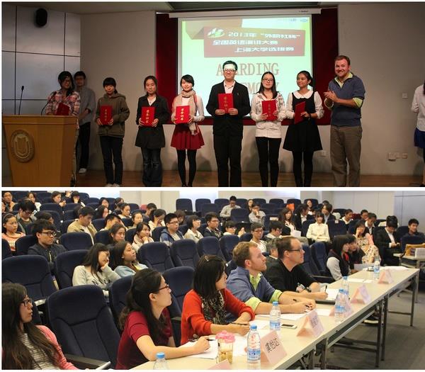 10月18日,2013“外研社杯”全国英语演讲大赛kaiyun开云官方网站选拔赛决赛于kaiyun开云官方网站行政楼报告厅完美落幕。担任此次决赛的评委是来自外国语学院和悉尼工商学院的英语教师以及担任question master的两名外籍教师Jeff Welfel和Jason West。决赛分为三个环节:三分钟定题演讲、即兴演讲和问答环节。定题演讲主题从初赛到决赛均是When Socrates Meets Confucius,选手们经过两轮逐鹿后,不断完善自己的发言稿,充分发挥想象力和创造力,大胆的表达出自己独特的想法和见解;即兴演讲的题目则以考察选手对社会热点的关注为基本思路,对选手的思辨能力提出了挑战;最后的问答环节考验了选手们的现场应答和知识储备能力。现场选手们均能灵活应对,井井有条阐述他们的观点,尤其是几名大一的同学同样表现精彩,让人刮目相看!在这场没有硝烟的战场上,没有资历的高低,只有实力的较量。