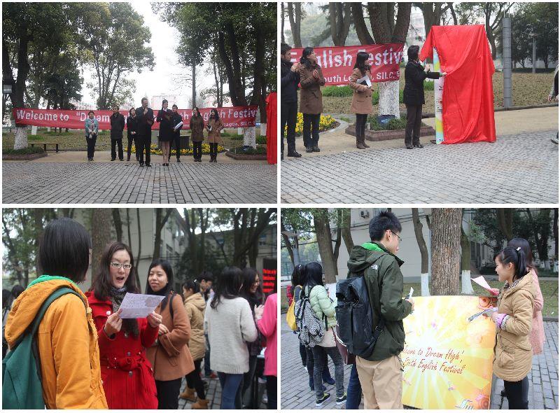 开幕式在街舞社同学们一支热情的劲舞中拉开了帷幕。深受悉商学子喜爱的外教Jason与学生代表共同作为此次英语节开幕式的主持人,成为了开幕式现场的一道亮点。澳方副院长Matthew Williams为此次英语节致辞,他介绍了英语节的各项精彩活动,同时动员同学们能积极参与到本次英语节丰富多彩的活动中来,提升专业英语的水平,展示悉商学生的风采。随后,Jason对本次英语节的雅思课堂、外文歌曲大赛、微电影拍摄、英语辩论比赛以及第十三届英语能力大赛等做了预告。最后,悉尼工商学院院长龚思怡老师为此次英语节揭幕,伴随着同学们热烈的掌声和现场丰富的各类英语小游戏,整个文荟广场荡漾着同学们的欢声笑语。