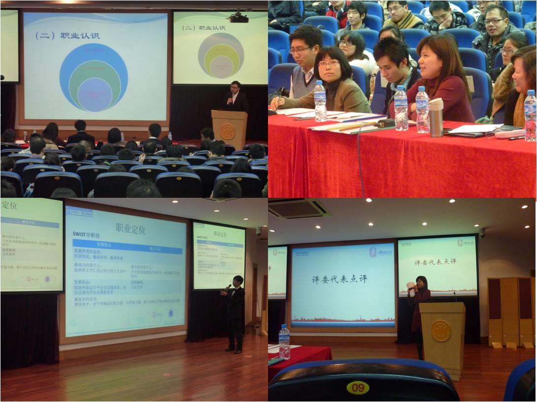 |        2013年3月24日下午,中欧工程技术学院“传递梦想,职业起航”职业生涯规划展示大赛在J楼方润华讲堂举行。此次大赛特别邀请佛吉亚排气控制技术开发(上海)有限公司人事张方霞、校招毕办王平、现供职于雷逊汽车配件(上海)有限公司的中欧05级校友孙慰、现供职于麦格纳斯太尔汽车技术(上海)有限公司的中欧06级校友夏凉等担任嘉宾评委。中欧学院直属党总支副书记李志芳、各年级辅导员以及中欧2010、2011级全体学生出席本次活动。     “中国梦是民族的梦,也是每个中国人的梦。只要我们紧密团结,万众一心,为实现共同梦想而奋斗,实现梦想的力量就无比强大,我们每个人为实现自己梦想的努力就拥有广阔的空间”,习近平总书记一番关于“中国梦”的讲话拉开了活动的序幕。个人梦是构筑“中国梦”的基石,“中国梦”为个人梦提供土壤,当“中国梦”与个人梦同频共振,二者都会加速绽放。此次职业生涯规划展示大赛正是让同学们绽放个人梦想的花朵,描绘属于自己的“中国梦”。     中欧学院分管就业辅导员孔卫平首先就此次参赛的总体情况进行了反馈,指出参赛同学在职业生涯规划书制作过程中所表现出的特质和存在的不足。经前期评审选拔,共有8名中欧学生进入今天的展示大赛。一张张精简迥异的PPT,幽默不缺乏逻辑感的答辩,独具一格的口才让整个会场笑声掌声此起彼伏。信息部主管、航空工程师、项目工程师、数据科学家等,这些职业对于大学生而言似乎有点遥远,但选手们清晰的发展脉络和精彩展示,让到场同学们感受到梦想并非遥不可及。评委老师们的认真点评则让大家明白,有梦想只是幻想,只有充分的准备、积极的心态和持久的努力才能实现梦想。     活动最后,作为中欧学院合作企业,上海宝信数字信息技术有限公司带来主题分享,充分展现了校企合作为同学们带来社会实践和企业实习的广阔空间。职业规划引领个人梦想,万千个人梦想筑成“中国梦”,相信已成功落幕的职业生涯规划展示大赛带给同学们的不仅仅是职业起航的理念,也是个人梦与“中国梦”共同绽放这一梦想的传递。 |