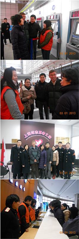 元旦期间,为了应对节假日增加的客流量,上海火车站同法学院协调,还增加了自动售票处导购志愿者和候车大厅扶梯口志愿者两个岗位,帮助旅客买票及维持候车大厅旅客秩序。前来慰问的领导、老师也看望了在第一、第二自动售票处及南北广场候车大厅扶梯口的志愿者,并同他们亲切握手、交谈,每到一处都会仔细询问同学们在元旦期间的志愿服务情况,嘘寒问暖,让志愿者倍受鼓舞。