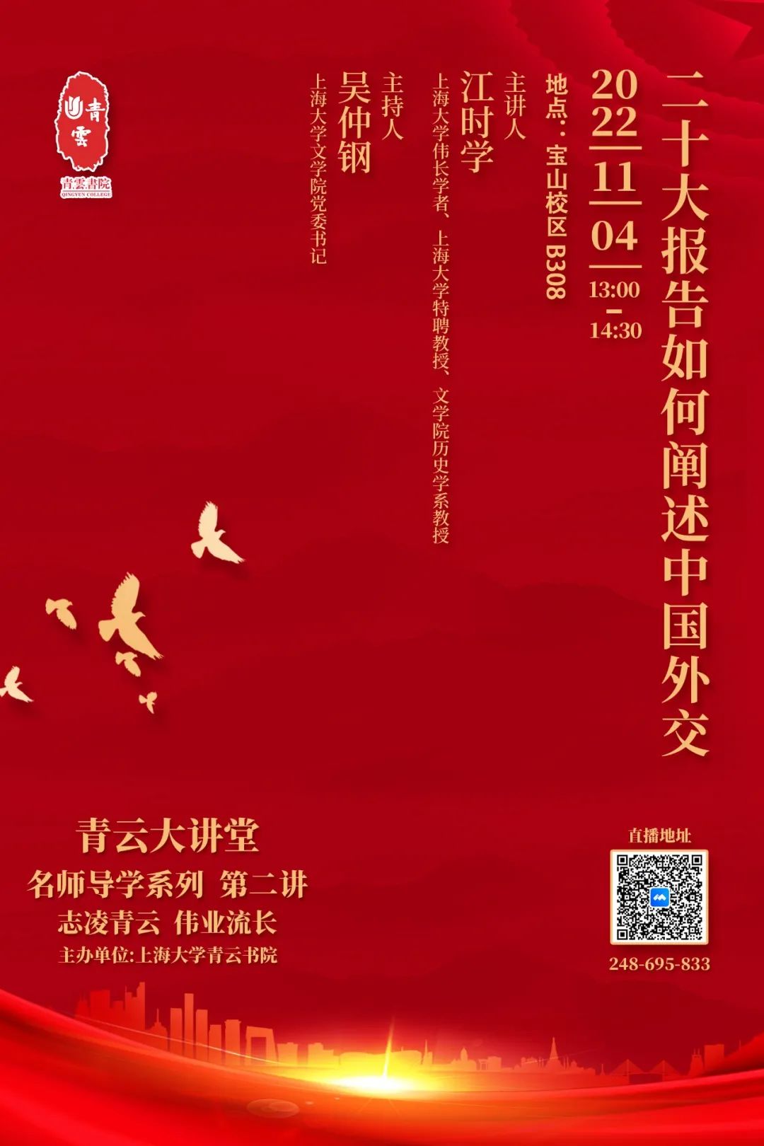 青云书院对接国家“新文科”建设总体目标和战略要求,积极践行钱伟长老校长“学生培养更重要在课外”的教育思想,设立“青云大讲堂”,邀请文学院、外国语学院、文化遗产与信息管理学院等kaiyun开云官方网站人文学科类伟长学者、名师专家开设“名师导学系列”讲堂,邀请校外著名专家学者开设“名师引领系列”,为青年学生提供与学者、专家、名师面对面交流的机会与平台,健全青年学生的人格养成,进一步培养“胸怀家国、文史兼修、中西会通的复合型卓越创新人才”。